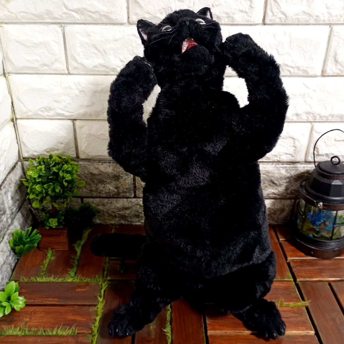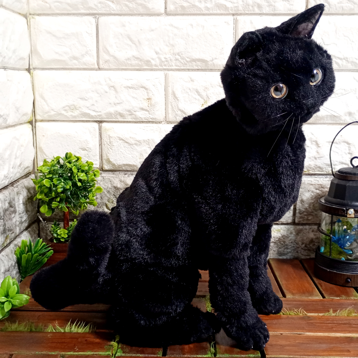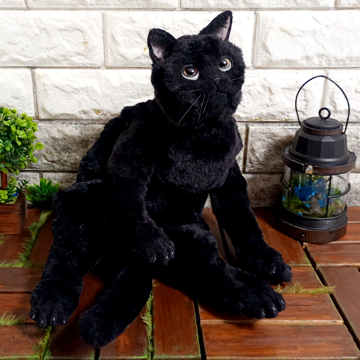 自在に可動できる黒猫の等身大リアルドール。 サラサラな毛並みのファーで作ったのでさわり心地がとても良いです。